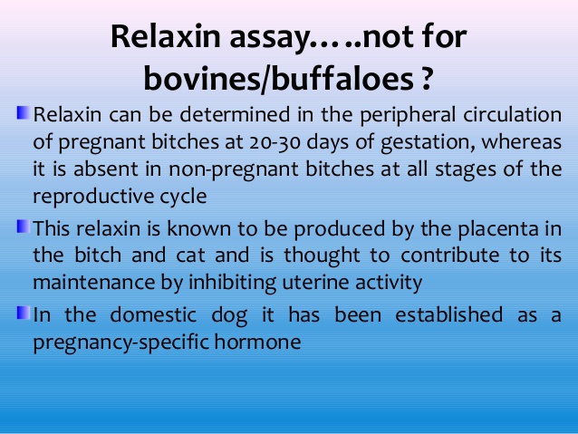 La prueba de PREÑEZ canina Relaxin se puede utilizar para diagnosticar la gestación tan pronto como el día 21 a 28 después del primer día del servicio. La relaxina es una hormona específica de la preñez que es producida principalmente por la placenta canina. Pueden producirse falsos negativos y los resultados negativos deben confirmarse mediante otras pruebas o repitiendo la prueba en 7 a 10 días.