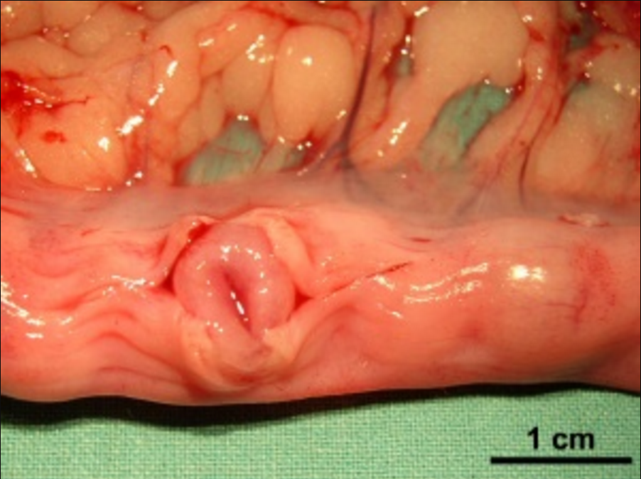 La presencia de la vesícula amniótica, la masa embrionaria y el latido cardiaco se pueden determinar desde el día 18 y 25 respectivamente usando un aparato de 3.5, 5.0 y 7.5 mhz. En el día 25 el diámetro del saco gestacional mide entre 8.2 ± 0.3 mm (7 a 9 mm) y puede alcanzar una longitud de 20.3 ± 1.1 mm.